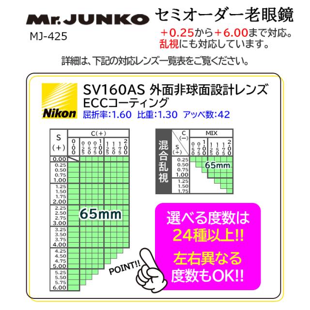 Mr.JUNKO ミスタージュンコ セミオーダー老眼鏡 薄型 非球面レンズ