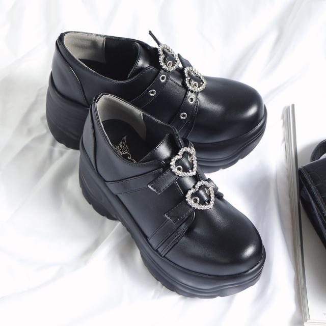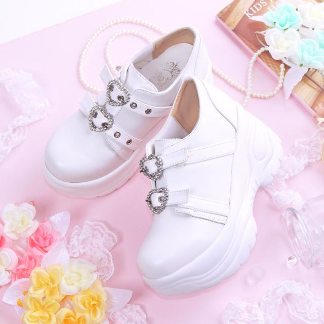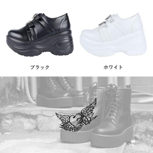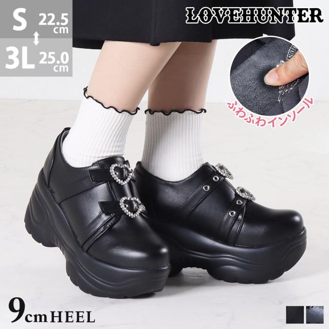 【LOVEHUNTER ラブハンター】のハートバックルベルト軽量厚底シューズ。