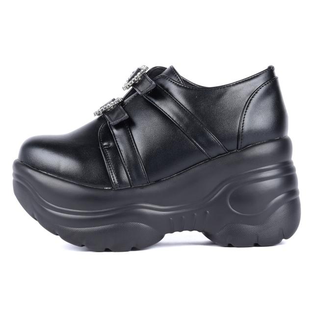 厚底スニーカー レディース ダッドスニーカー ハート ビジュー ストラップ 9cmヒール 軽量 地雷系 クッション 痛くない No.1672 22.5-25cm 黒 LOVEHUNTER ラブハンター