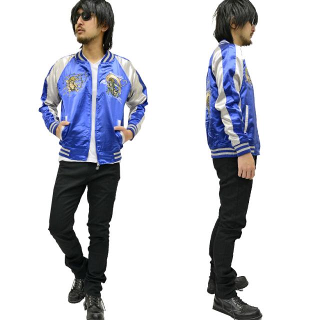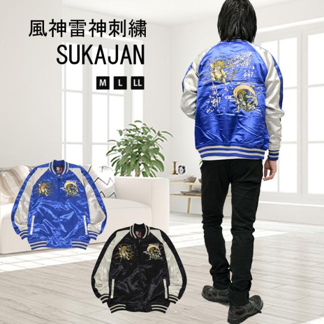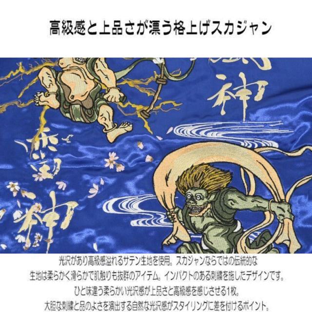 【閉店セール】風神雷神 和柄刺繍 サテン スカジャン 本格 和柄刺繍 スカジャン 20-1481z FUUJIN RAIJIN 刺繍!スカジャンおなじみの光沢のある素材感がグッド!メンズ スカジャン JKT ジャンパー ブルゾン スーベニアジャケット 和柄刺繍 ドラゴン