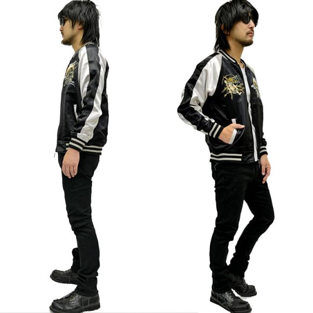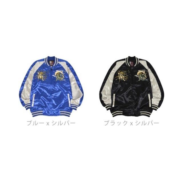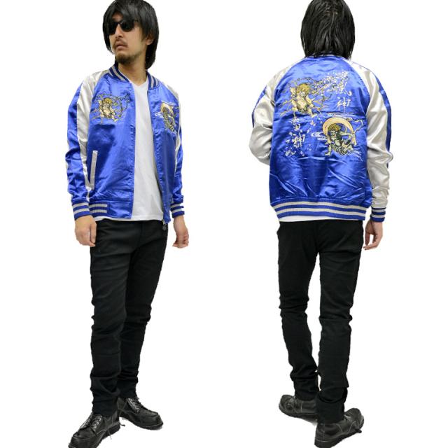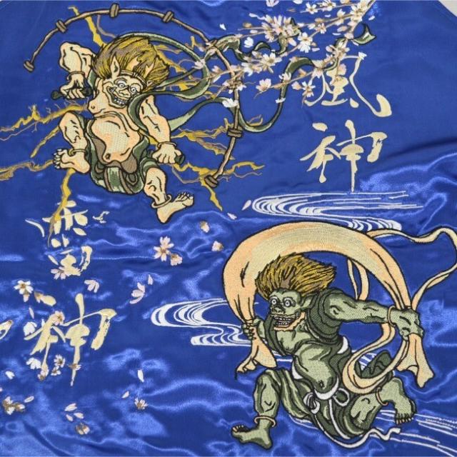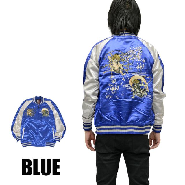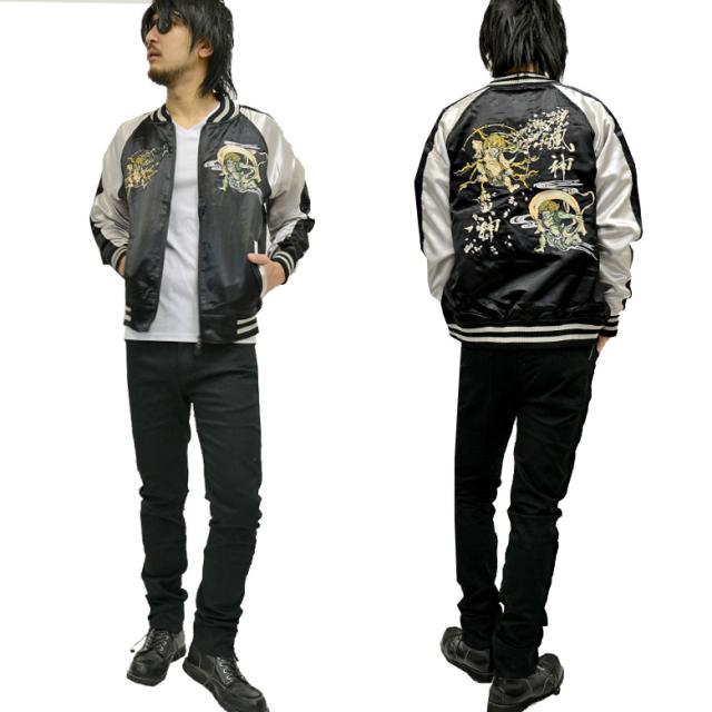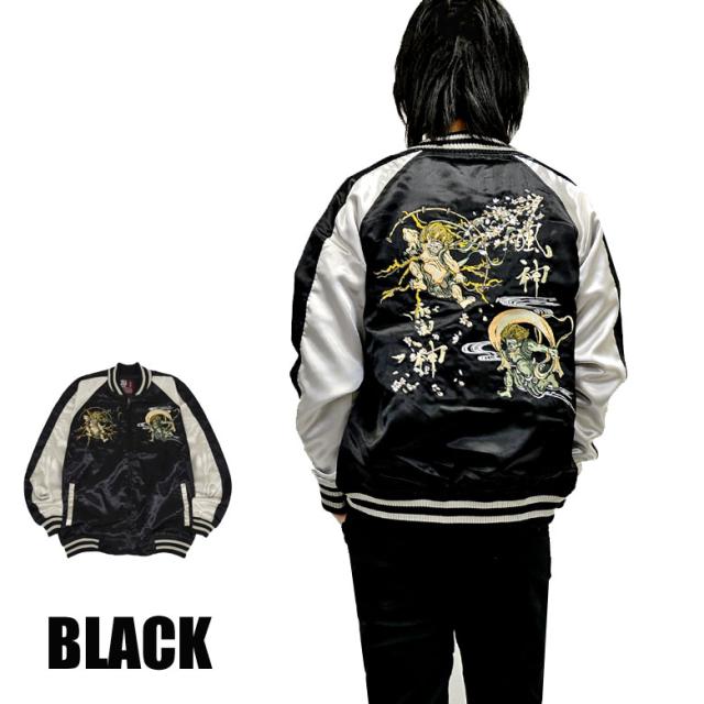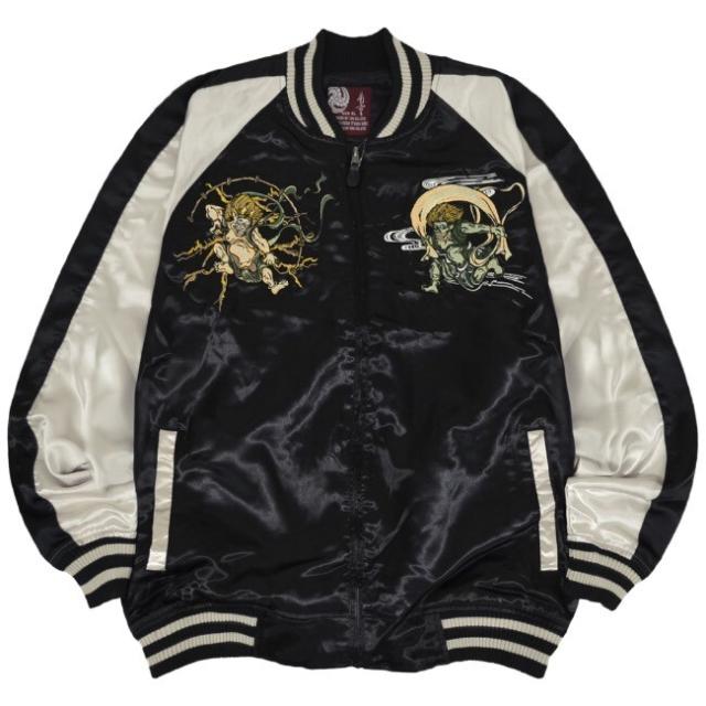 スカジャン/アウター/刺繍/和柄/風神雷神/ふうじん らいじん/ラグランスリーブ/サテン生地/