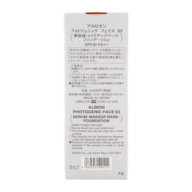 ALBION アルビオン フォトジェニック フェイス 美容液・メイクアップベース・ファンデーション 03 ナチュラルベージュ 40g SPF20 PA++[ギフトラッピング対応]