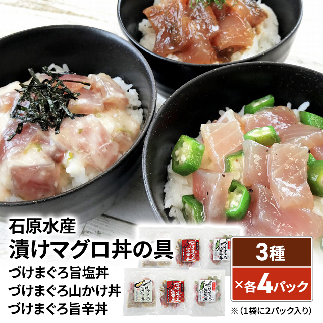 石原水産 漬けマグロ丼の具 3種×各4パック (づけまぐろ旨塩丼、づけまぐろ山かけ丼、づけまぐろ旨辛丼) 鮪 まぐろ 冷凍 海鮮丼の具