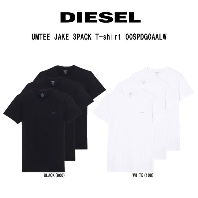 DIESEL(ディーゼル)Tシャツ 半袖 ラウンドネック 無地 ワンポイント コットン 3枚組 セット メンズ 男性用 肌着 UMTEE JAKE 3PACK T-shirt 00SPDG0AALW