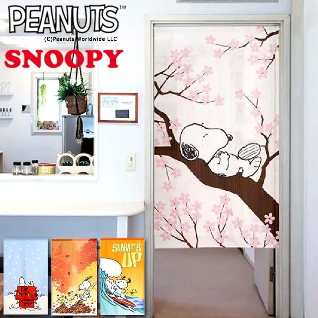 スヌーピー四季のれん (和の風情 リビングキッチン 春の陽気ち SURFUP 落ち葉遊び 雪景色)