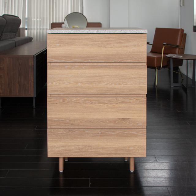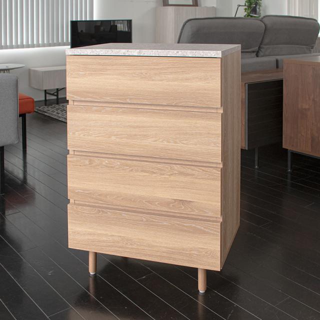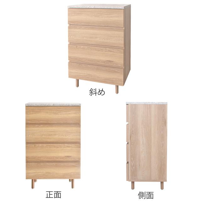 ナチュラルな板目×石目調の天板が可愛いチェスト幅60cm 4段