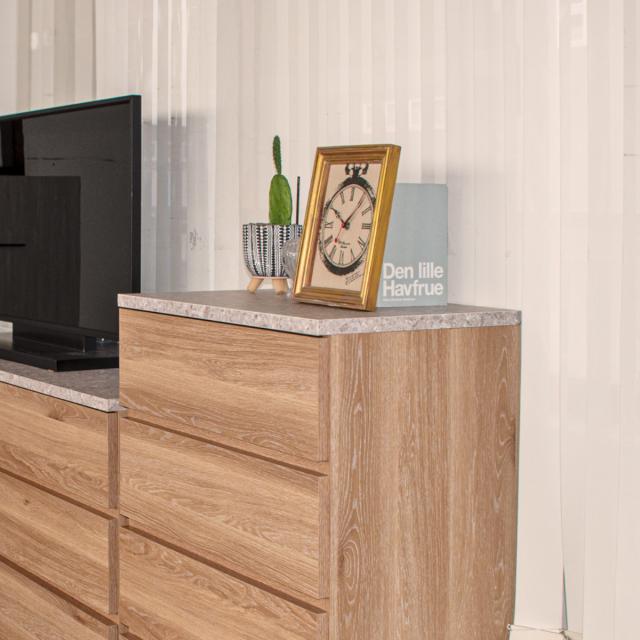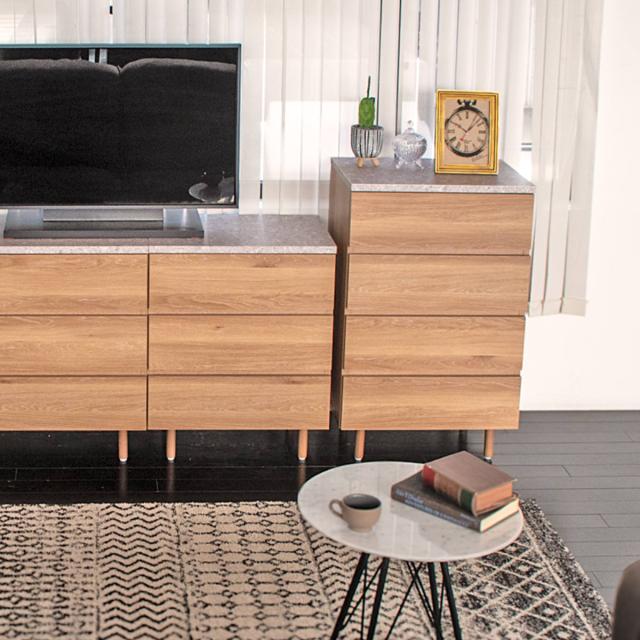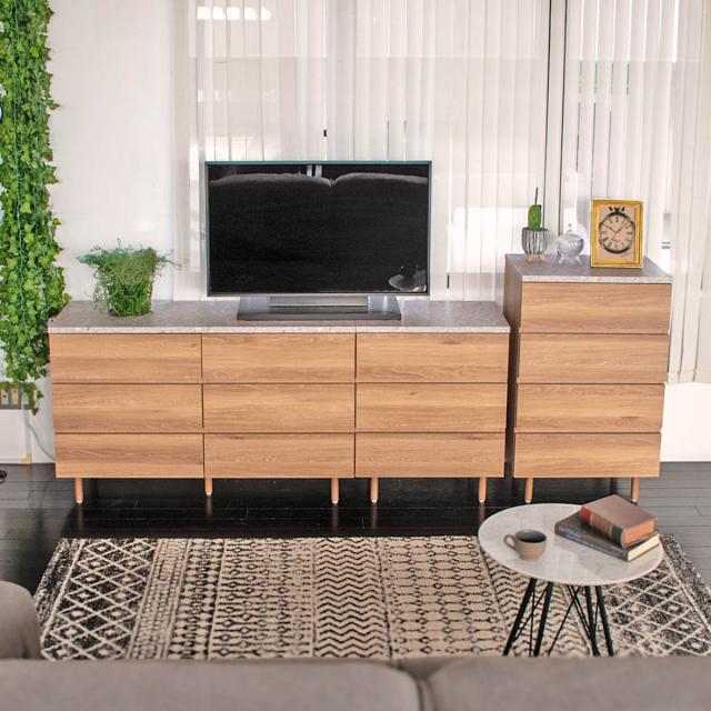 ナチュラルな板目×石目調の天板がお洒落なチェスト