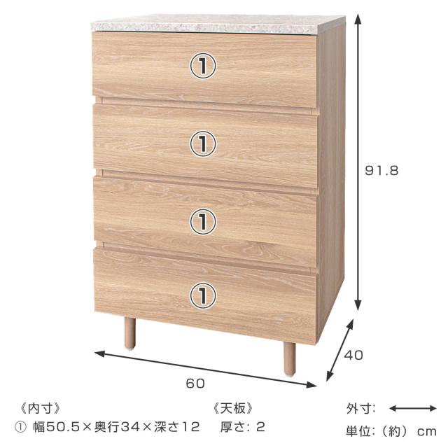 チェスト 幅60cm 4段 ドゥーロ 石目調天板 日本製 ( 棚 ラック 収納 家具 たんす タンス 引出し 石目調 リビング収納 キャビネット ナチュラル シンプル 4杯 スライドレール )