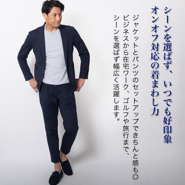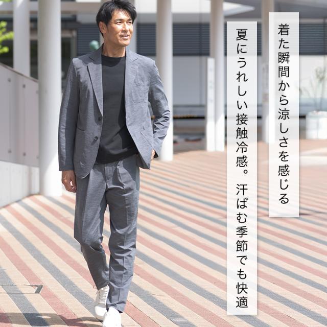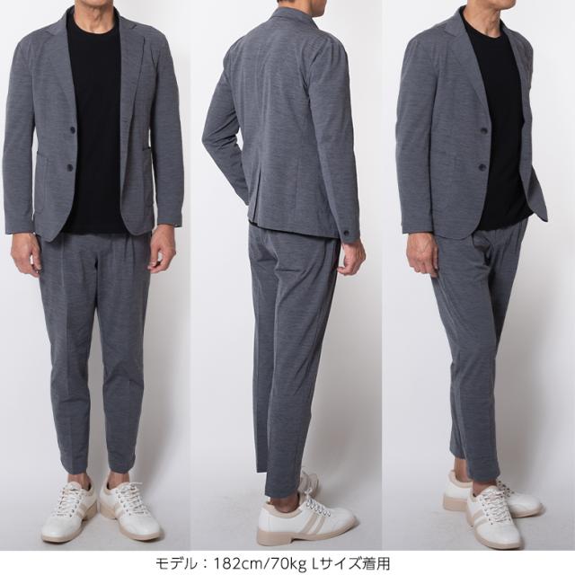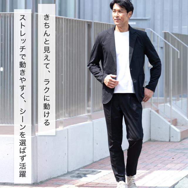 【キーワード】 メンズ カジュアルスーツ セットアップスーツ 春夏 秋 接触冷感 涼しい 涼感 クールビズ テレワーク リモートワーク 在宅ワーク 在宅勤務 ZOOM会議 WEBミーティング 出張 旅行 ジャケット ジャケパン カジュアル ビジネス ビジカジ ゴルフ 休日 スリム テーパードパンツ シャーリング スウェット ストレッチ 伸縮素材 シングル2ボタン 黒 ブラック ネイビー 濃紺 グレー チャコール