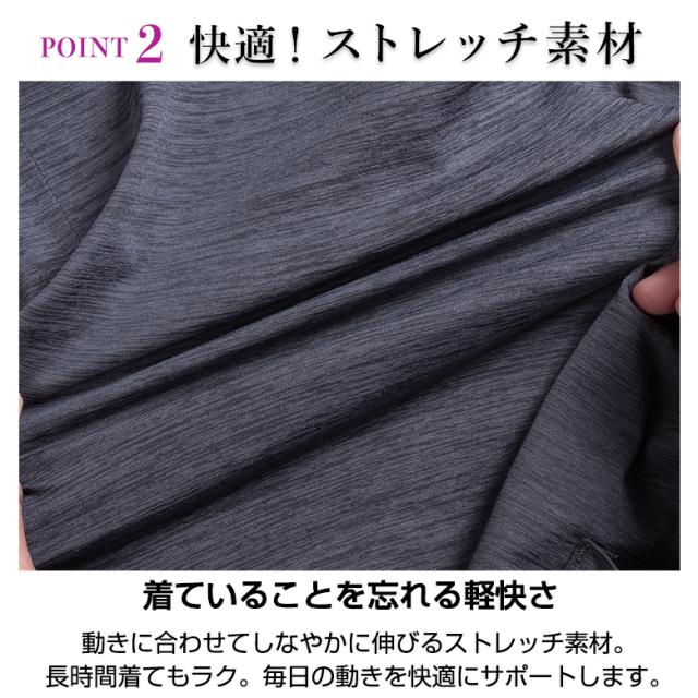 伸縮性のある素材で動きやすく、オンオフどちらにも対応。
