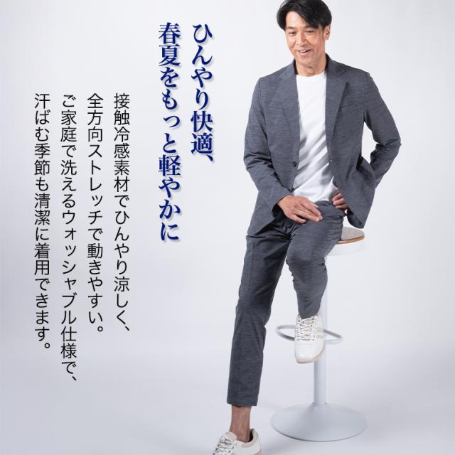 セットアップ メンズ スーツ ビジネス かっこいい スリム カジュアル 接触冷感 クールビズ ウォッシャブル ストレッチ 春夏秋