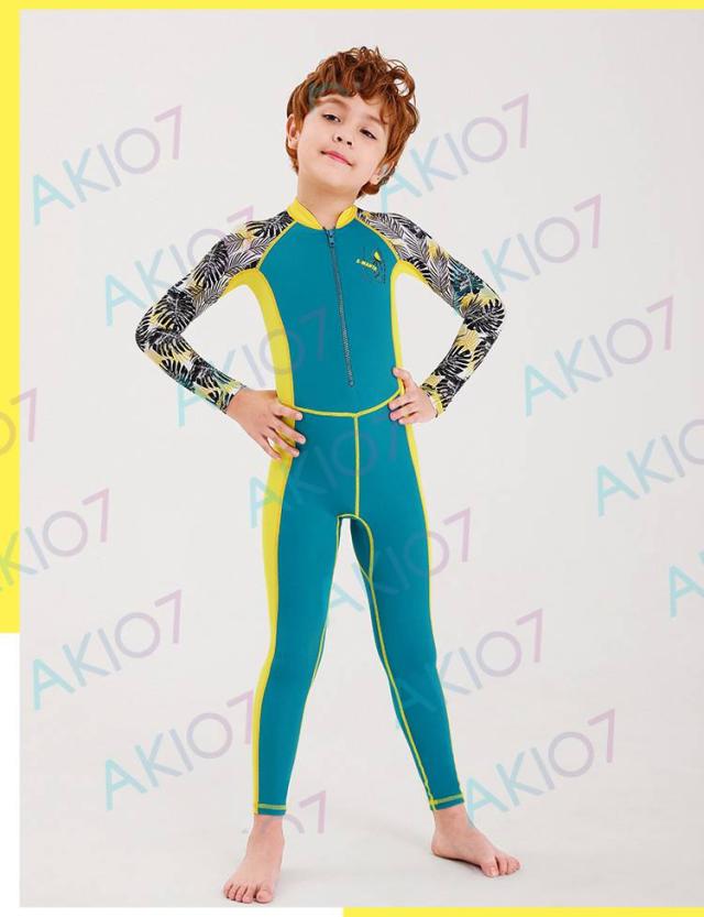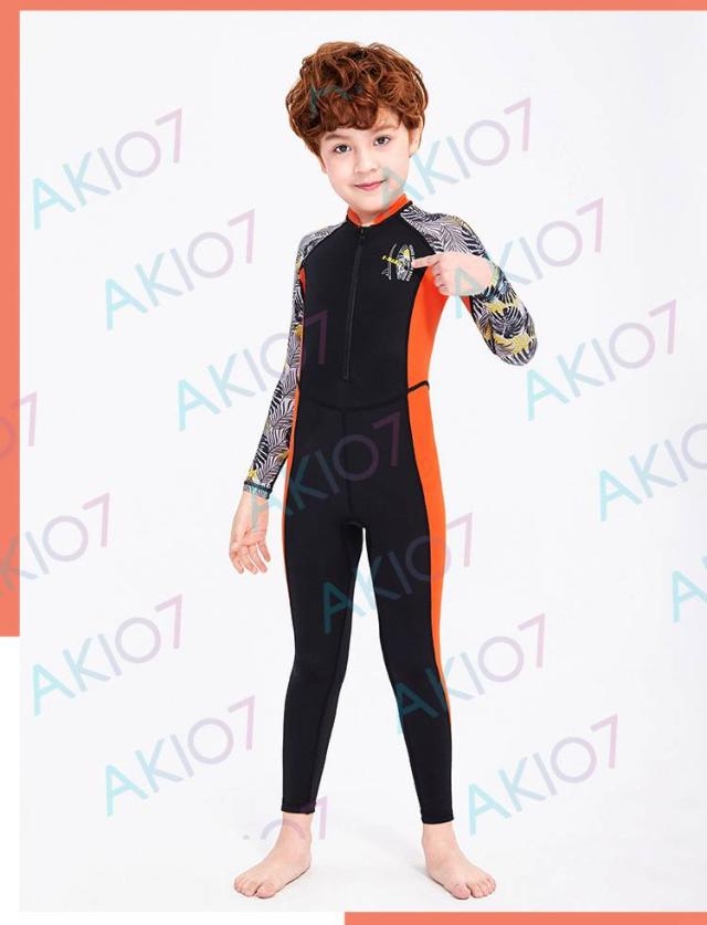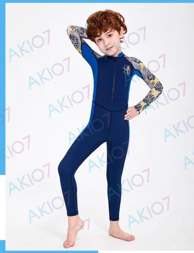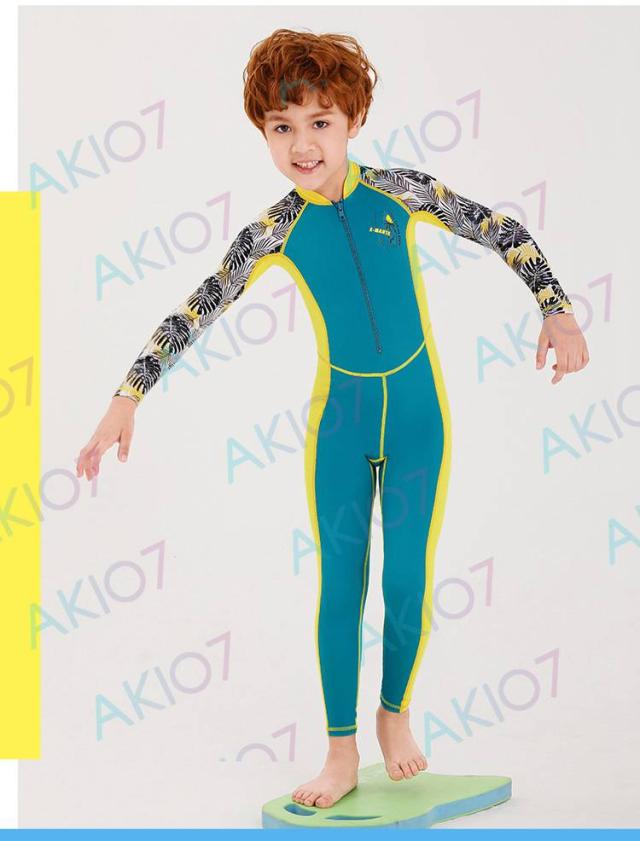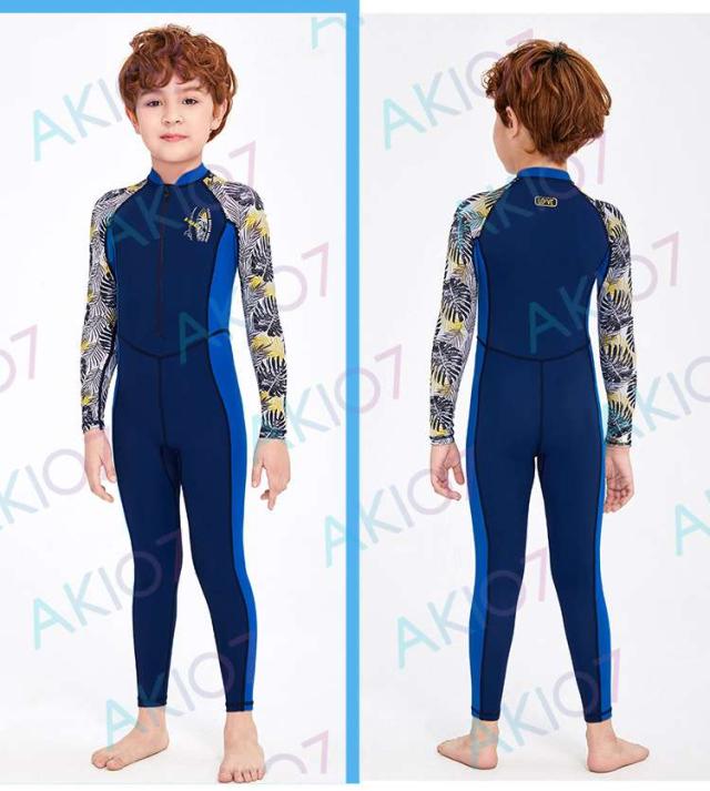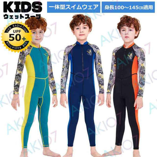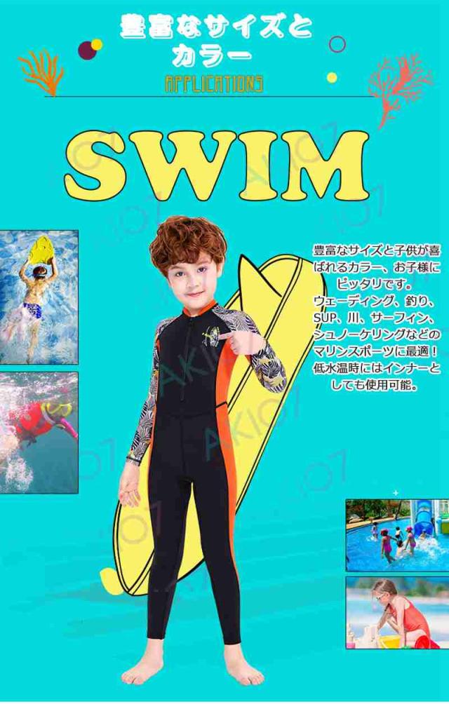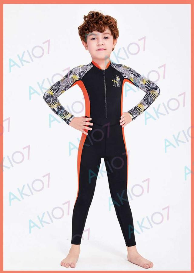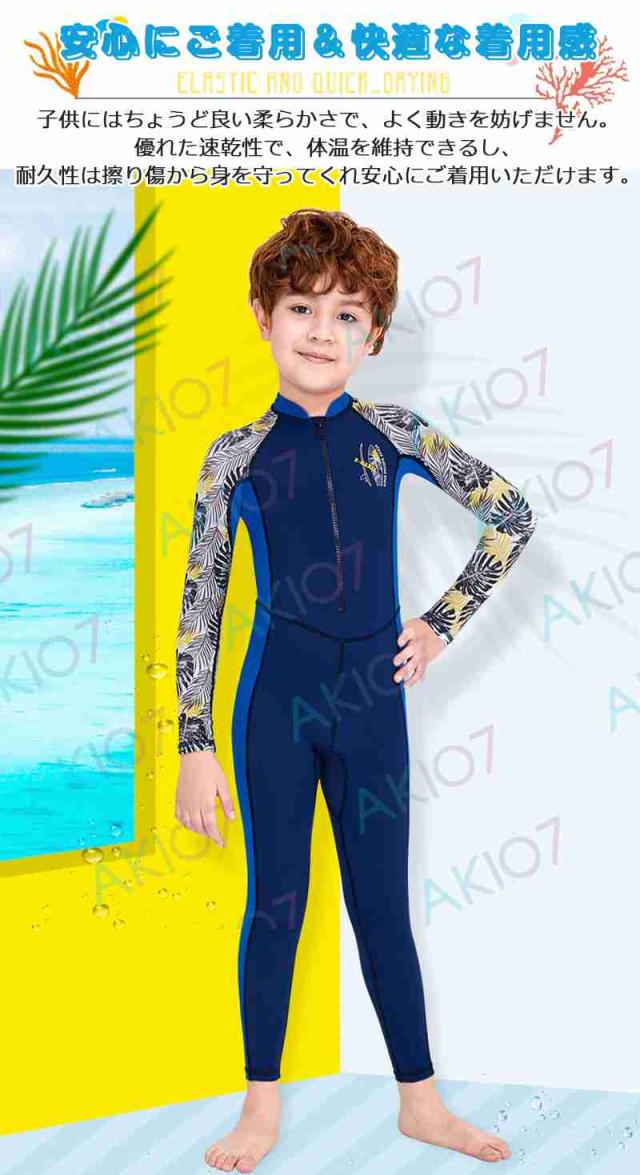 【キッズ一体式&ロング】キッズ ウェットスーツ 子供スイムウェア 水着 防寒保温 ワンピース 長袖 ズボン UVカット ケガ防止 日焼け防止 身長100〜145cm対応