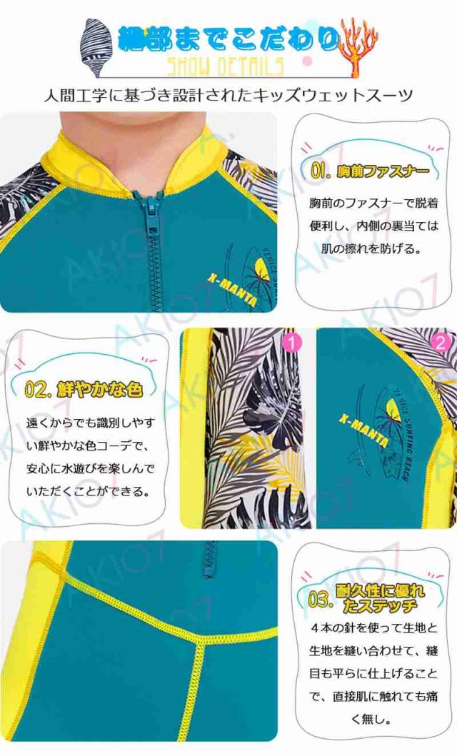 ウエットスーツは日焼け防止、ケガ防止、高い保温性、浮力などの機能性から、水着よりも安全・快適にお子様が海で遊ぶことが出来ます