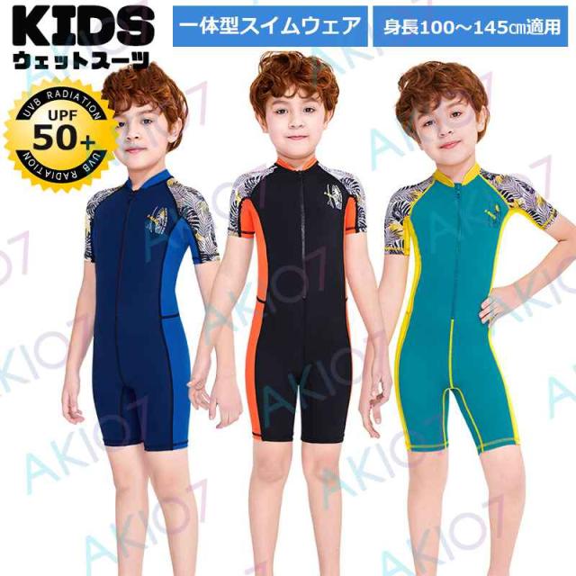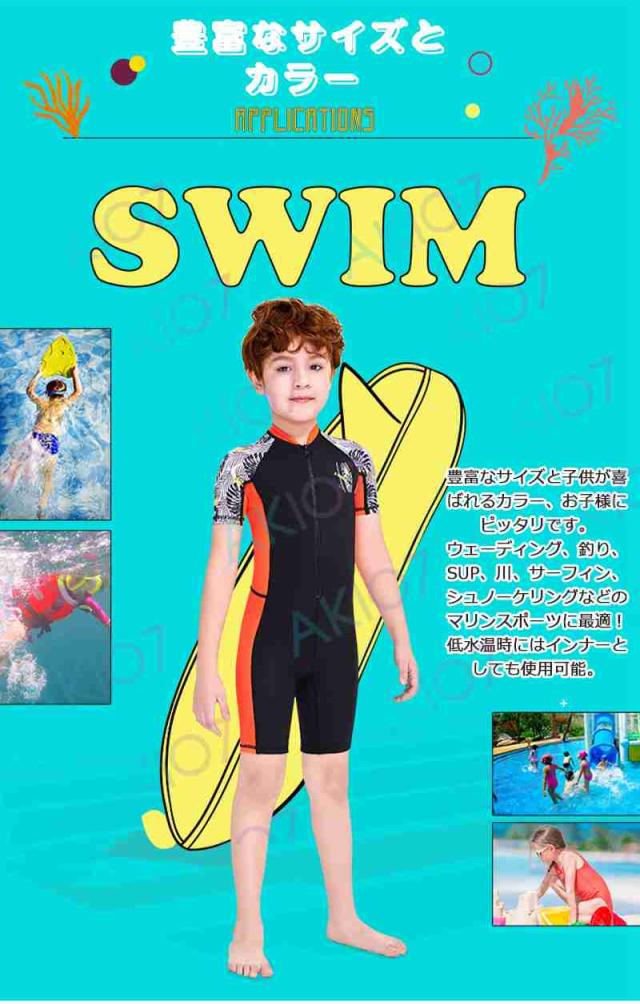 【一体式&ショート】キッズ ウェットスーツ 子供 スイムウェア 水着 防寒保温 ワンピース 半袖 パンツ UVカット ケガ防止 日焼け防止 身長100〜145cm対応