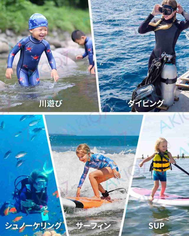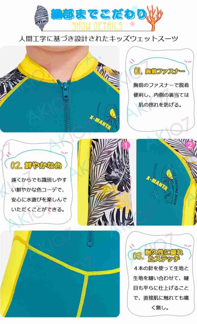 ウエットスーツは日焼け防止、ケガ防止、高い保温性、浮力などの機能性から、水着よりも安全・快適にお子様が海で遊ぶことが出来ます