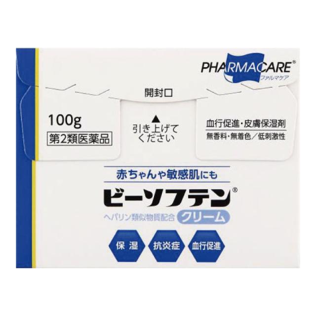 ビーソフテンクリームは、皮膚に浸透し、末梢血管に作用することで、血流を改善します。また、抗炎症作用と保湿作用で、荒れた皮膚を治します。