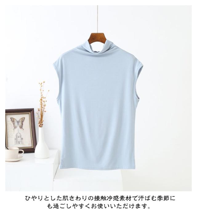 カットソー Tシャツ インナー 接触冷感 レディース ゴルフ 伸縮性 ノースリーブ 重ね着 薄手 タンクトップ uv おしゃれ フィット 日焼け防止 薄手 ストレッチ ハイネック スポーツ タートルネック メッシュ 作業 きれいめ 無地 おしゃれ 春夏用