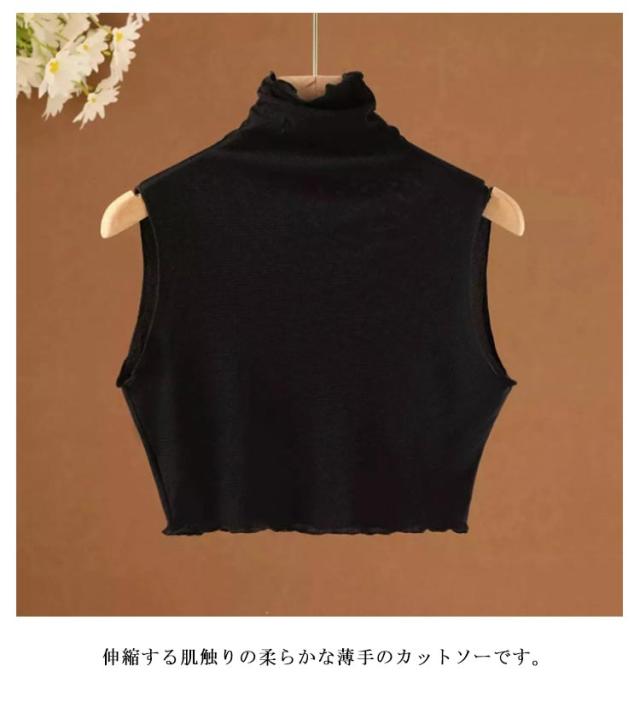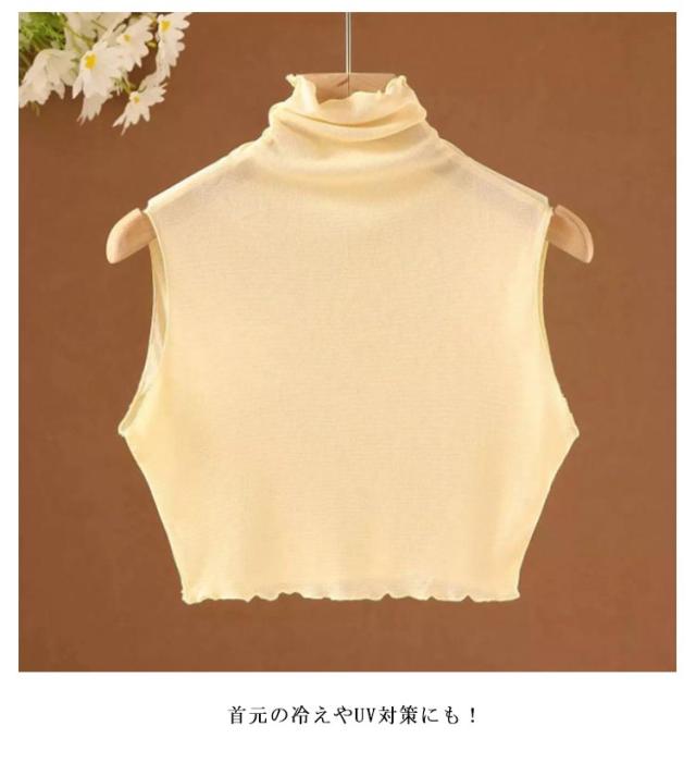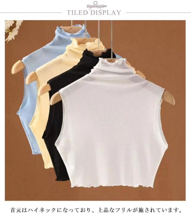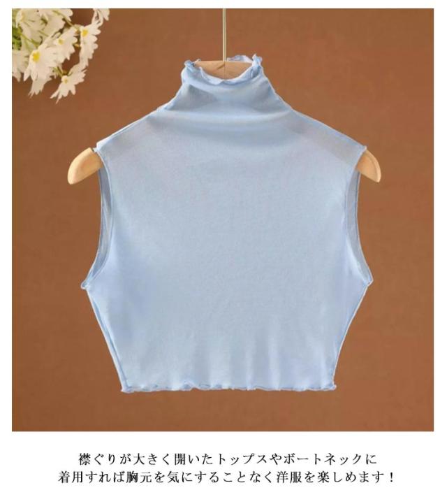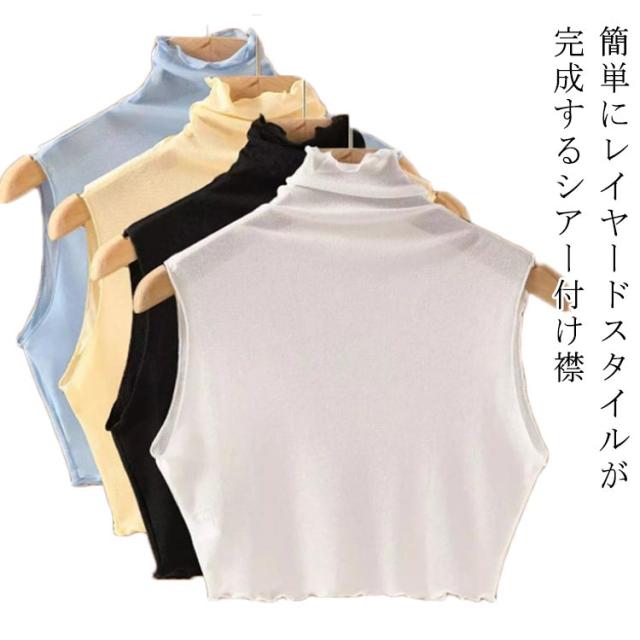 薄手 インナー 春 重ね着 グッズ インナー シアー シースルー カットソー レイヤード ハイネック フリルネック つけえり つけ襟 ノースリーブカットソー タートルネック レイヤード 付け襟 レディース フェイクカラー 夏 シースルー 通学 通勤 OL 女子 女性 カットソー