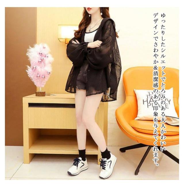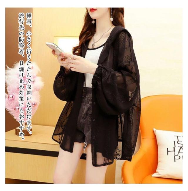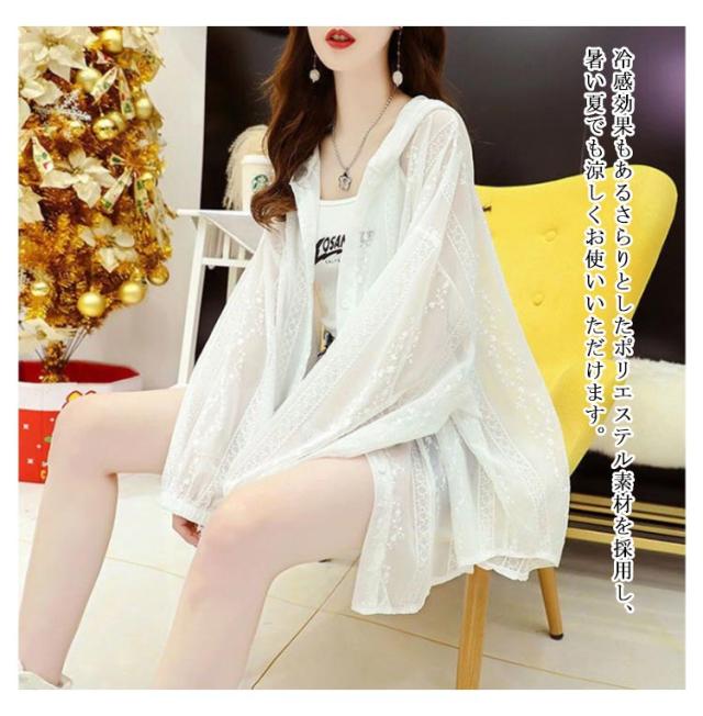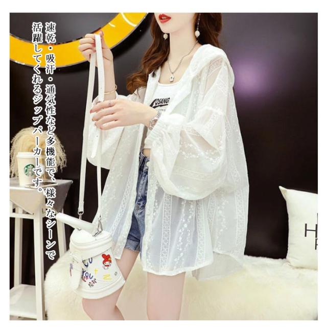 カーディガン 春 カジュアル パーカー 薄手 レディース 夏服 透け感レース レース 刺繍 フード付き トップス レースカーディガン 涼しい UVカット 韓国ファッション ゆったり 体型カバー おしゃれ UVカット 大きいサイズ シンプル ギフト プレゼント