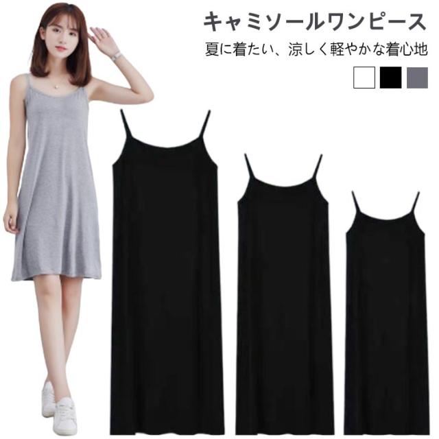 キャミソール ノースリーブワンピース キャミワンピ ミディアム 3丈 ワンピース 透け防止 キャミソールワンピース ワンピース キャミソール ペチコート レディース ワンピース シンプル Aライン 大人ワンピース ロングワンピース 選べる