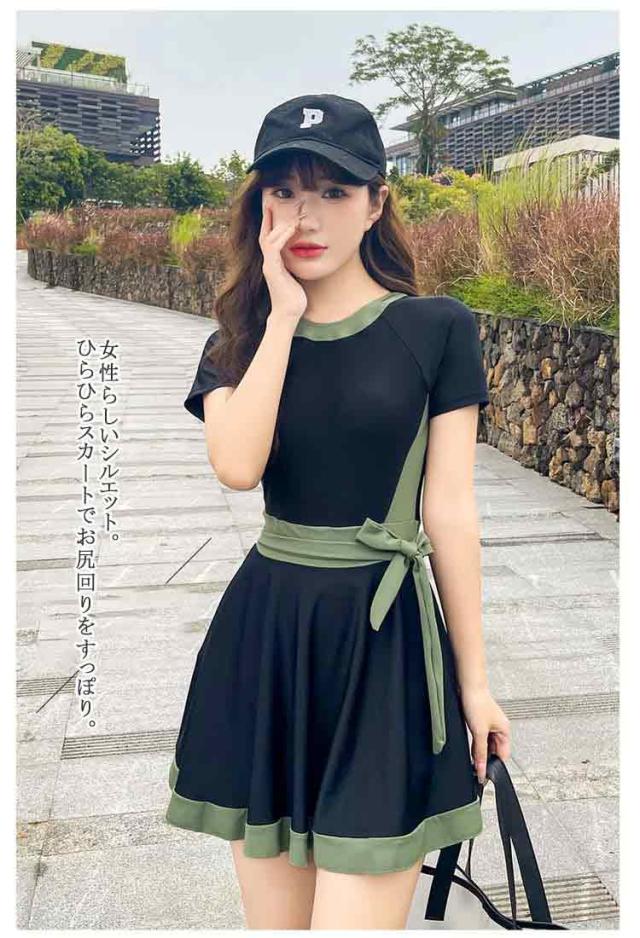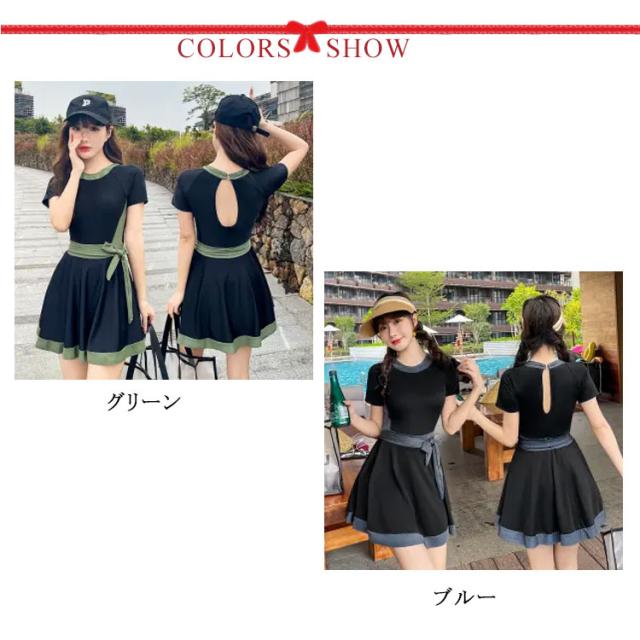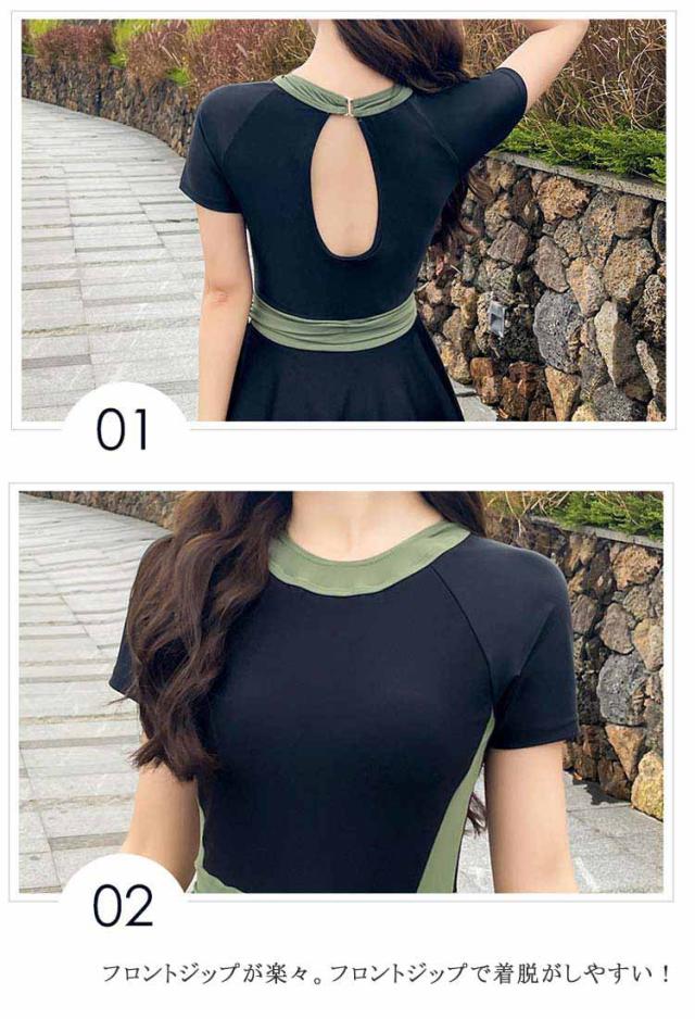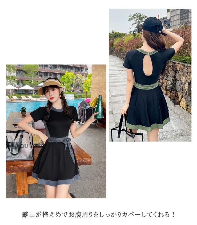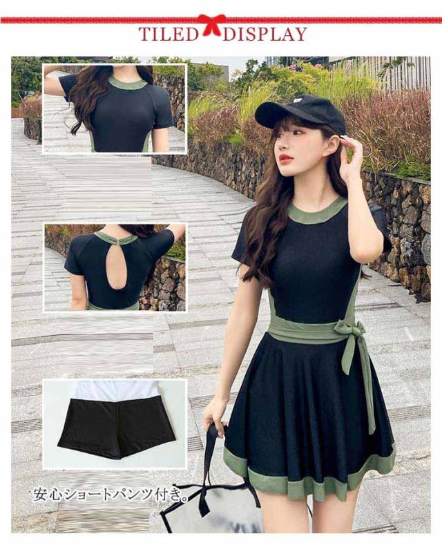 水着 30代 ワンピース オールインワン ママ水着 体型カバー 半袖 ショートパンツ付き パット入り オトナ女子 無地 みずぎ スイムウェア ウエストマーク 露出控えめ 20代 レディース