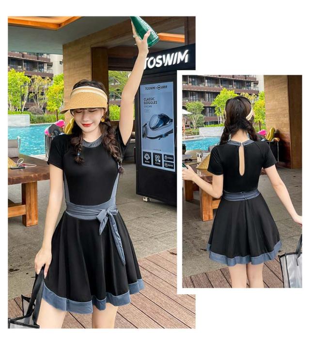 | カッコ可愛い!スポーティーワンピース水着セット。 フロントジップが楽々。フロントジップで着脱がしやすい! 露出が控えめでお腹周りをしっかりカバーしてくれる! 安心ショートパンツ付き。 女性らしいシルエット。ひらひらスカートでお尻回りをすっぽり。 | |