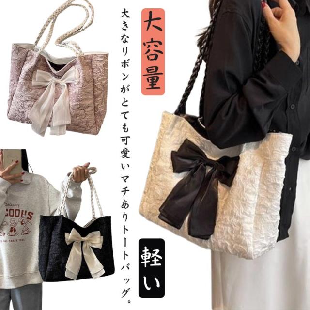結婚式 A4 バッグ トートバッグ 大容量 通勤 リボンバッグ 軽い パーティーバッグ 推し活 レディース フォーマル サブバッグ バッグ リボン ホワイト トート サテン マザーズバッグ ママバッグ ギャザー ビッグトート ブラック 四角型
