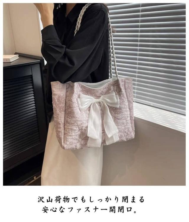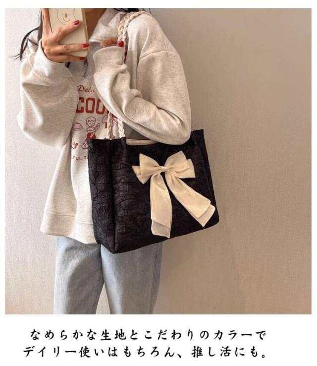 | 大きなリボンがとても可愛いマチありトートバッグ。 しっかりとマチがあり、収納力抜群な大容量。肩からも掛けられて、荷物もしっかり入ります。 沢山荷物でもしっかり閉まる安心なファスナー開閉口。 ギャザーデザインの綺麗な光沢感のあるサテン生地としっかりとした縫製が人気のバッグです。 なめらかな生地とこだわりのカラーでデイリー使いはもちろん、推し活にも。 通勤バッグ・お稽古バッグ・マザーズバッグにもぴったり♪ | |