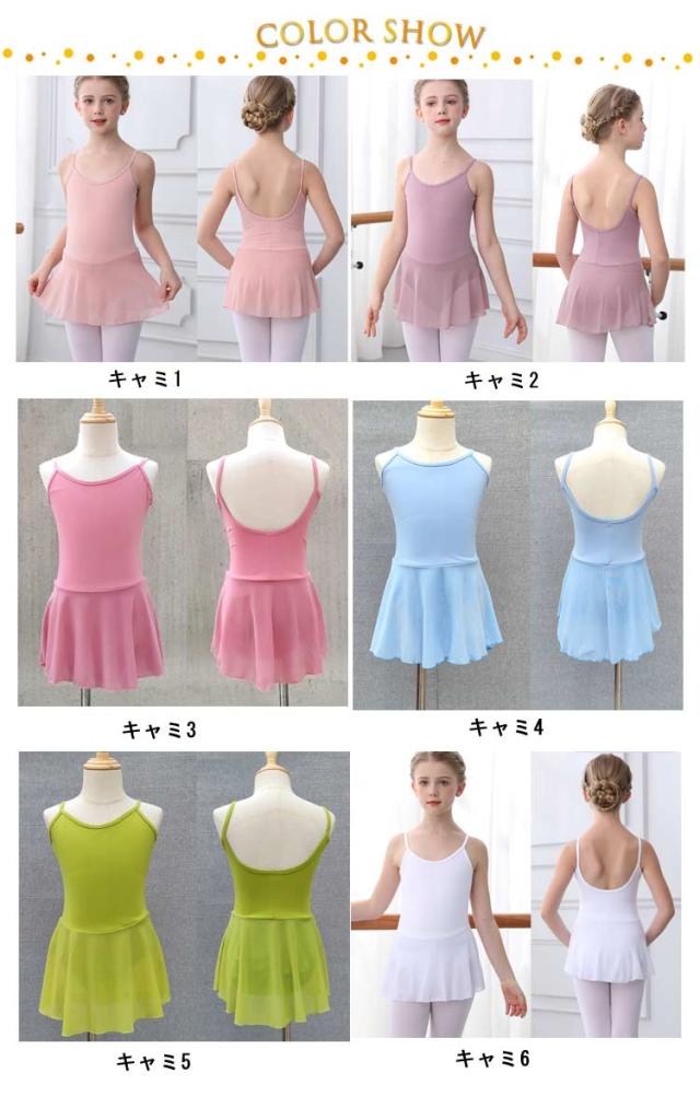 | キャミ&長袖選べる、スカート付き子供用レオタード。 シンプル、可愛らしいデザインが盛り込まれています。 バックススタイルは大きく背中のラインがカットされており、後ろ姿もとてもきれいに見せてくれます。 女の子ならきっと喜んでくれるはず。プレゼントにも最適です。 バレイを初めて習うビギナー、初心者、スターターから、中級者、上級者まで、幅広くご使用いただけます。 150-190cmまではパット入りポケット付き! | |