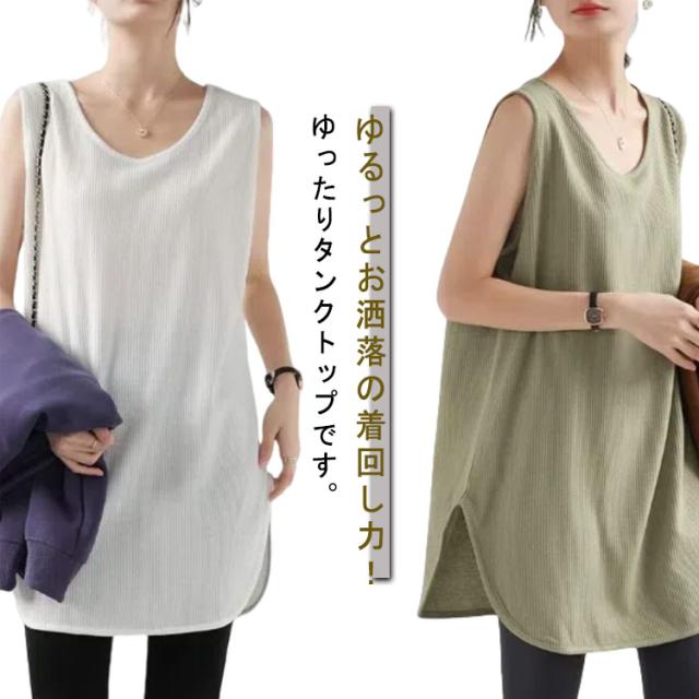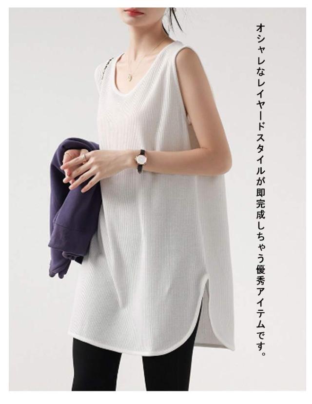 タンクトップ 重ね着 丸裾 Tシャツ インナー レイヤード ノースリーブ 裾ラウンド 無袖 ロング レディース 春夏 トップス 大きいサイズ シンプル カットソー 無地 レイヤード おしゃれ カジュアル タンクトップ スリット入り M L XL 2XL M L XL 2XL 3XL