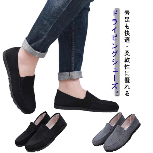 ドライビングシューズ 通気性 カジュアルシューズ 運転しやすい スニーカー ローカット メンズ ドライビングシューズ 柔らかい 布 軽量 スリッポンシューズ 靴 素足も快適 スニーカー モカシン 春夏 秋