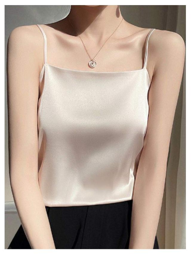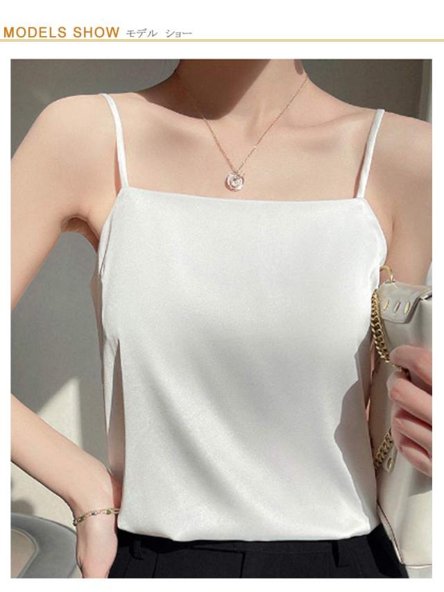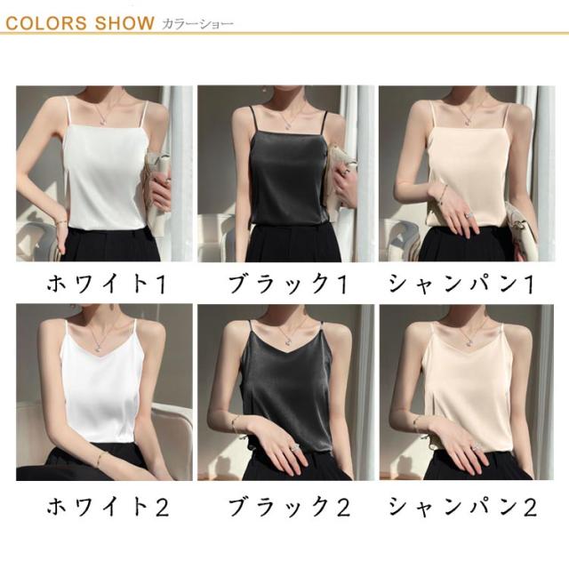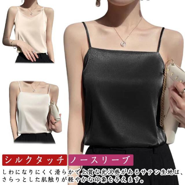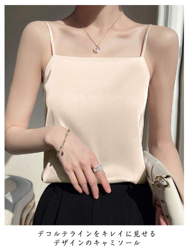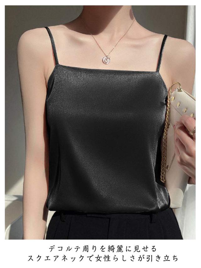サテン ノースリーブ インナーキャミソール インナー スクエアネック サテンキャミ シルクタッチ 光沢感 細ストラップ キャミソール シルクタッチ きれいめ お洒落 トップス ブラウス 下着 ショート丈 大きいサイズ サテンキャミソール