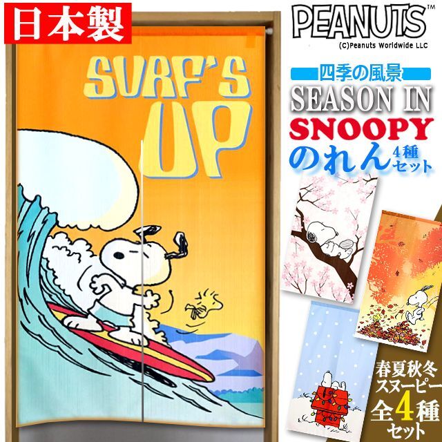 暖簾 日本製 スヌーピー四季のれん 4種セット 出入り口 タペストリー 部屋 インテリア 和の風情 リビング キッチン 春の陽気ち SURFUP 落ち葉遊び 雪景色
