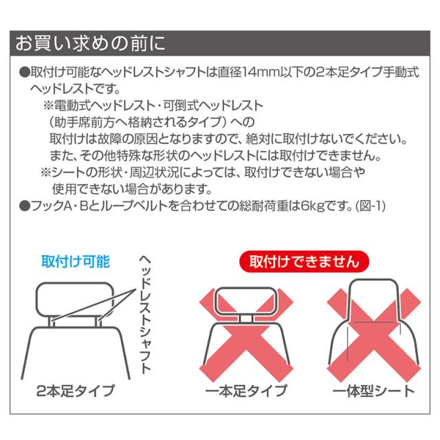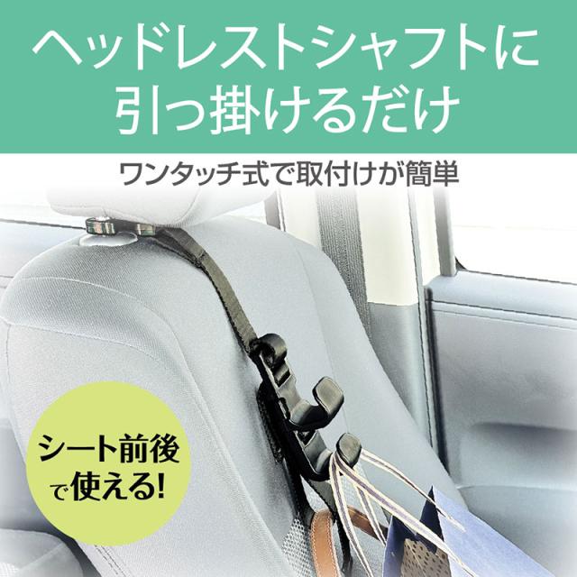 ●ヘッドレストシャフトに引っ掛けるだけのワンタッチ式で取付けが簡単です。