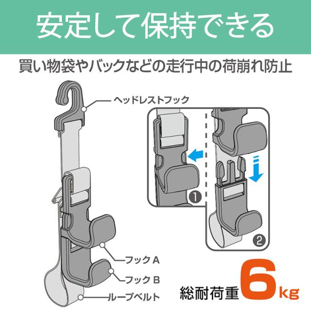 シートベンリフック 車内収納 ループ/フック×2 荷物かけ 6kgまでOK 買い物袋かけ 車内 星光産業 EE-46