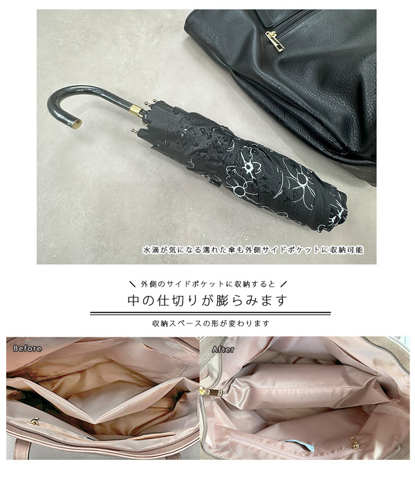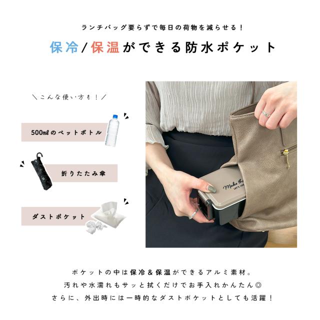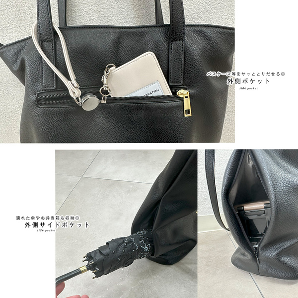 毎日使うものだから、シンプルかつ使いやすく。 A4サイズやPCはもちろん、普段の必需品もばっちり収納。 \当店オリジナル/ 保冷も保温も可能な『べんりポケット』 お弁当やペットボトルはもちろん、濡れた折り畳み傘もそのままで◎ サッと肩掛けできる長めのハンドルも使いやすさのポイント。 内側・外側の収納ポケットはゆとりがあり取り出しやすい仕様。 バッグ底面の擦れ傷を軽減することができる底鋲もついています。 商品詳細■サイズ(約) 縦29cm × 横38cm ×奥行13cm 持ち手:61cm ■重量(約) 479g ※当店平置きサイズです。 ※製品による個体差がある場合がございますので予めご了承ください。 ※商品の色、素材感は撮影状況・ディスプレイの状況等から若干の誤差が生じる場合がございます。 レビュー商品の評価: