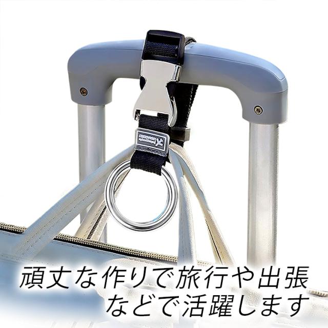 をスーツケースやカバンに掛けられる、両手を解放できる荷物掛けホルダーです