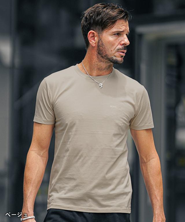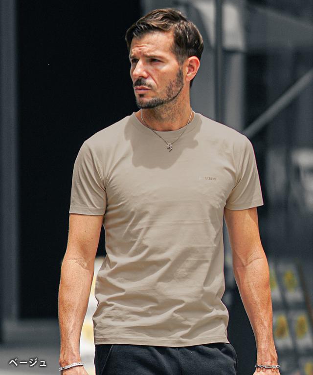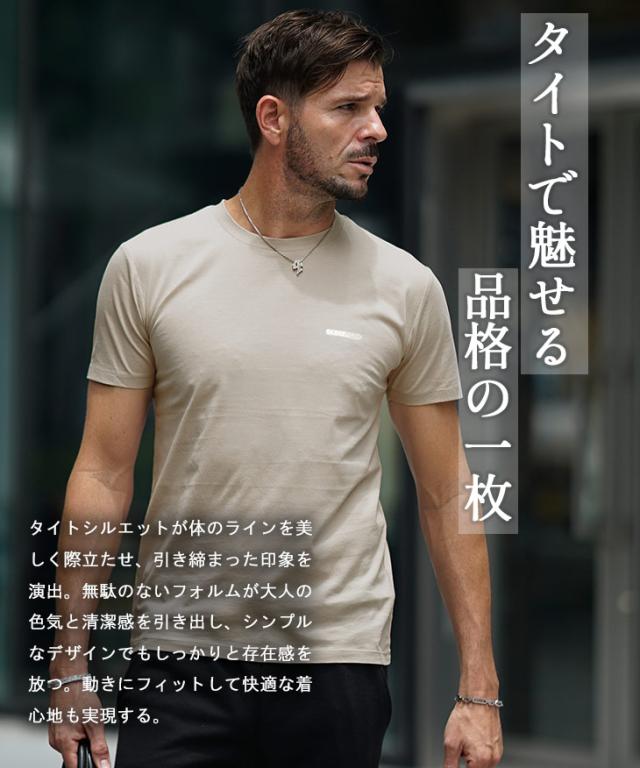 ロゴTシャツ メンズ Tシャツ タイト ワンポイント 半袖Tシャツ 黒 細身 細い スリム カットソー 半袖 白Tシャツ 黒Tシャツ プリント メンズ ゴールド グレー ベージュ ブランド 夏 夏服 夏物 春夏 メンズファッション リゾート ちょいワル 春新作 新作