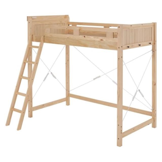 ・その他:(約)幅106×奥行210×高さ186×床面高146.5cm ■組立式■床面サイズ:幅97×長さ197cm■2口コンセント付 主材:天然木(パイン材) ベッド下を収納や住空間として活用できるロフトタイプ。
