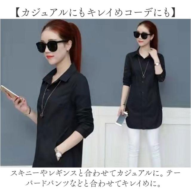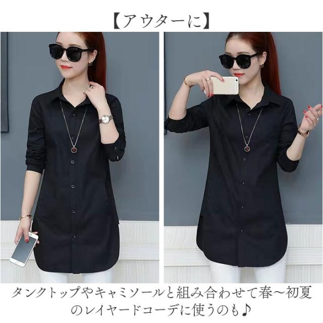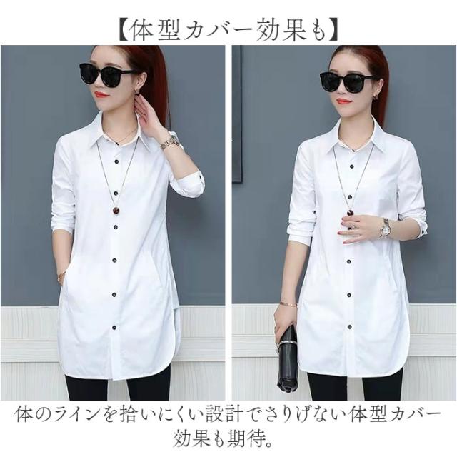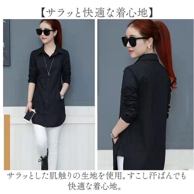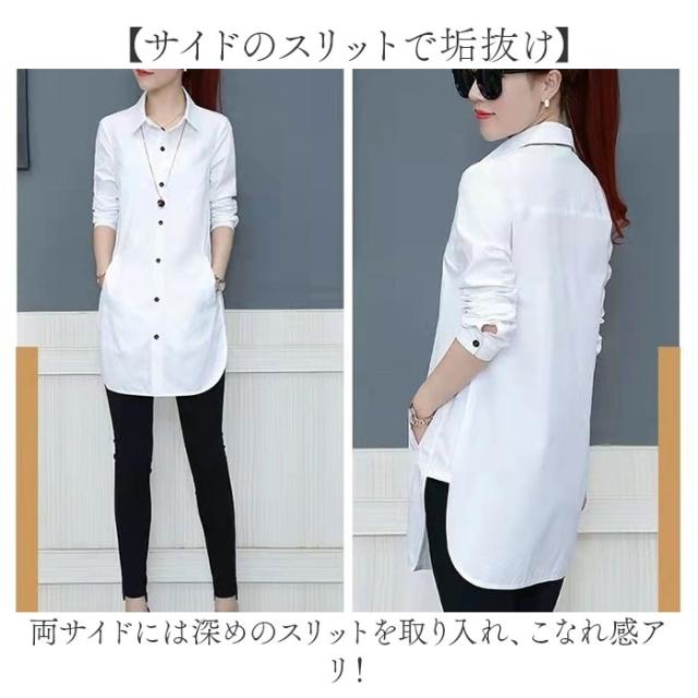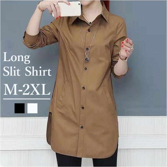 シャツ ブラウス レディース 長袖 通販 シャツブラウス ロング ワイシャツ Yシャツ チュニック おしゃれ トップス 前開き サイドスリット スリム ポケット付き シンプル きれいめ