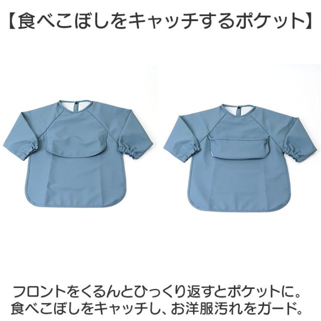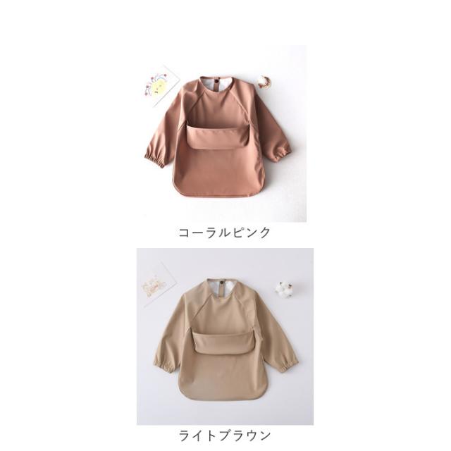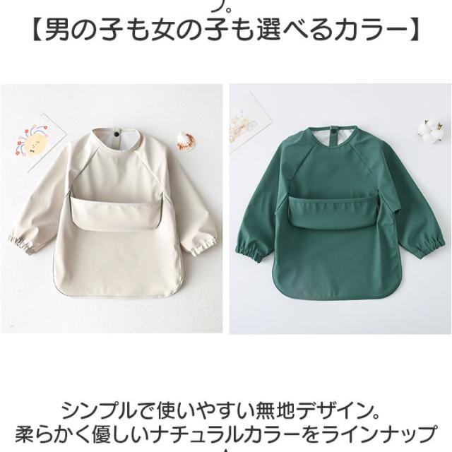 お食事エプロン 赤ちゃん 長袖 通販 ベビー用エプロン お食事スタイ エプロン スタイ ベビー 男の子 女の子 スナップボタン 食べこぼしガード ポケット付き 撥水 柔らかい 洗える