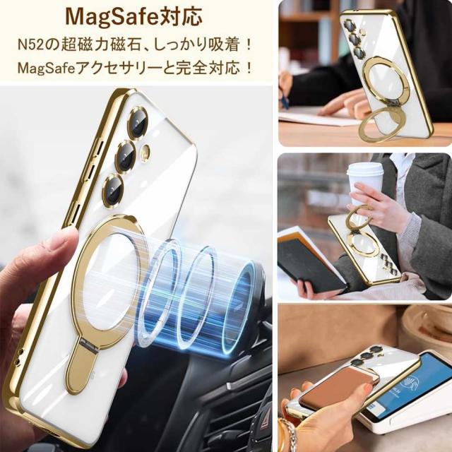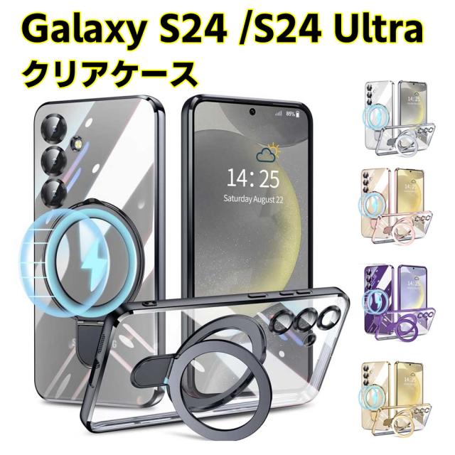 Galaxy S24 SC-51E SCG25 Galaxy S24 Ultra MagSafeリング スタンド兼用スタンド内蔵クリアケース 縦横両対応 車載ホルダー車載マグネット対応