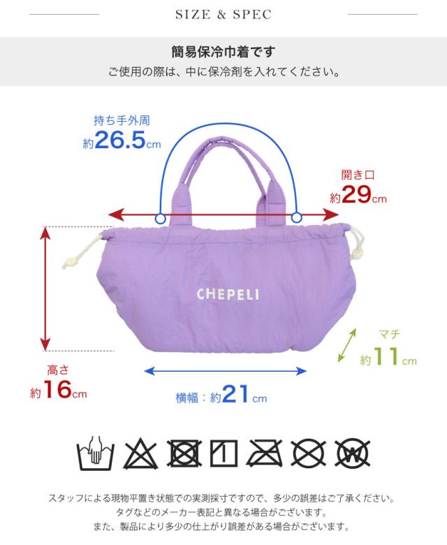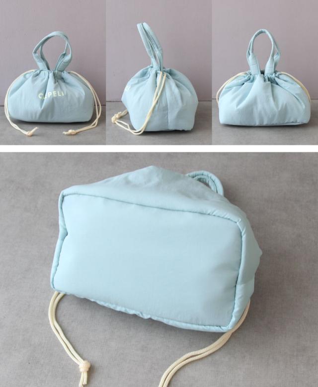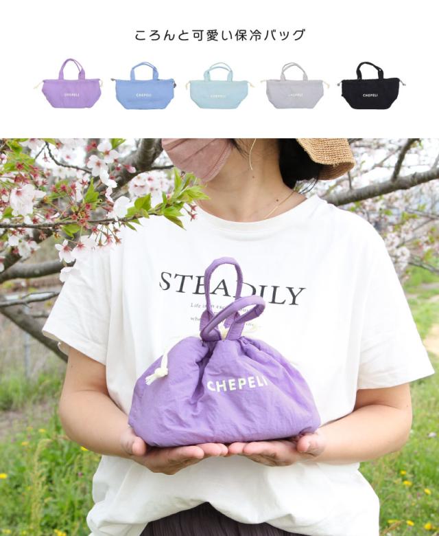 ころんと丸いシルエットが可愛い保冷巾着バッグ。保冷バッグには珍しい巾着仕様。手持ちサイズなので、お弁当の持ち運びやバッグイン、ちょっとしたお買い物のエコバッグ替わり等様々なシーンでお使いいただけます。柔らかなパステルカラーとセンターロゴが目を引く、オススメのアイテムです。