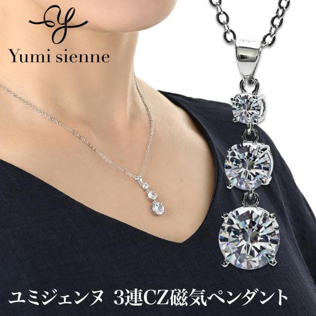 Yumi Sieene 3連CZ 磁気ペンダント ユミジェンヌ 磁気ネックレス ネックレス 桂由美監修 女性用 おしゃれ レディース 肩こり 首こり 正規品 管理医療機器 チェーン 効果 ペンダント 真鍮 ネオジム磁石 血行改善 ジルコニア 母の日