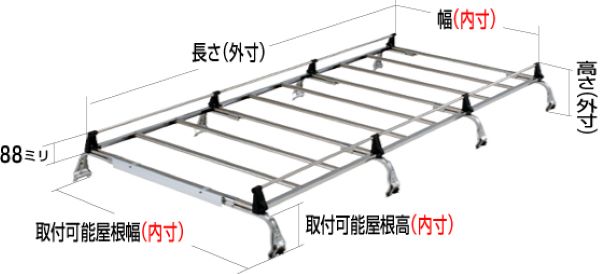 取付可能屋根幅(内寸):1084〜1763mm