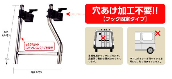 キャリア キャリアー キャリヤ キャリヤー ルーフキャリア ルーフキャリアー カーキャリア カーキャリアー 業務用 業務用キャリア 業務用キャリアー 1BOX ワンボックス はしご 梯子 ラダー リアラダー リヤラダー リアゲート リヤゲート バックドア ステップ アルミパイプ アルミ ステンレス 穴あけ加工不要 穴あけ不要