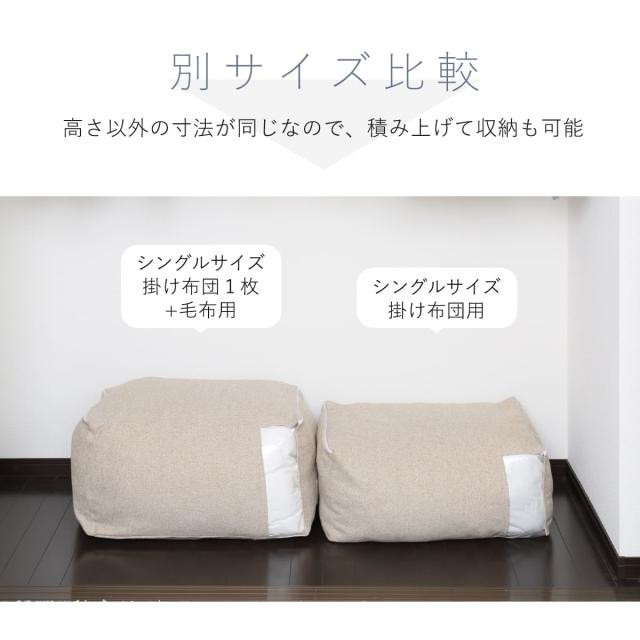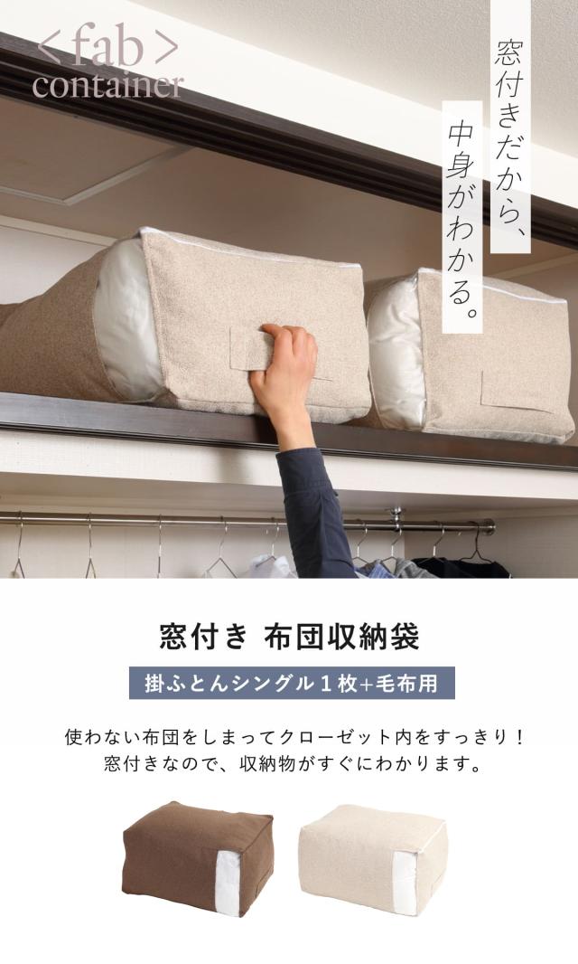 布団収納袋 シングル+毛布 掛け布団用 窓付き ( 布団 収納 ふとん ケース ファブリック クローゼット収納 コンパクト 省スペース 押し入れ こたつ布団 fab container 持ち手付き 押入れ 洋服 保管 おしゃれ 収納ケース 毛布 衣類 )