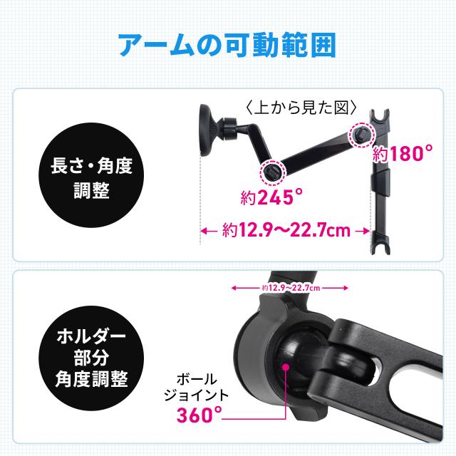 ●ボールジョイントで360度回転や自由な角度に調整し、固定することができます。