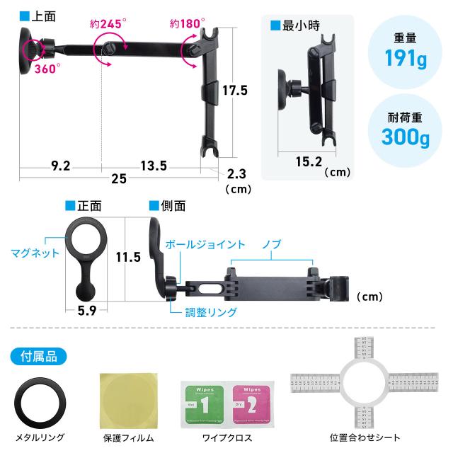 ⇒ご購入の前にご確認下さいヘッドレストに取り付けて、後部座席でスマホを固定できる車載ホルダー。MagSafe対応なのでiPhoneを片手で簡単に脱着できる。付属のメタルリングでMagsafeに対応していないスマホの取り付けも可能。伸縮アームで見やすい位置に調整できます。【WEB限定商品】