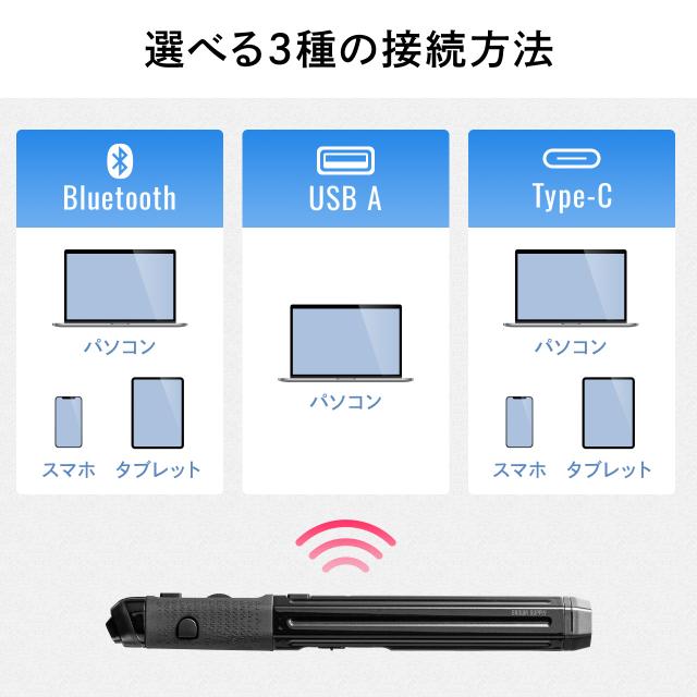 ●Bluetooth、Type-Aワイヤレス、Type-Cワイヤレスの3種の中から接続方法を選ぶことができます。